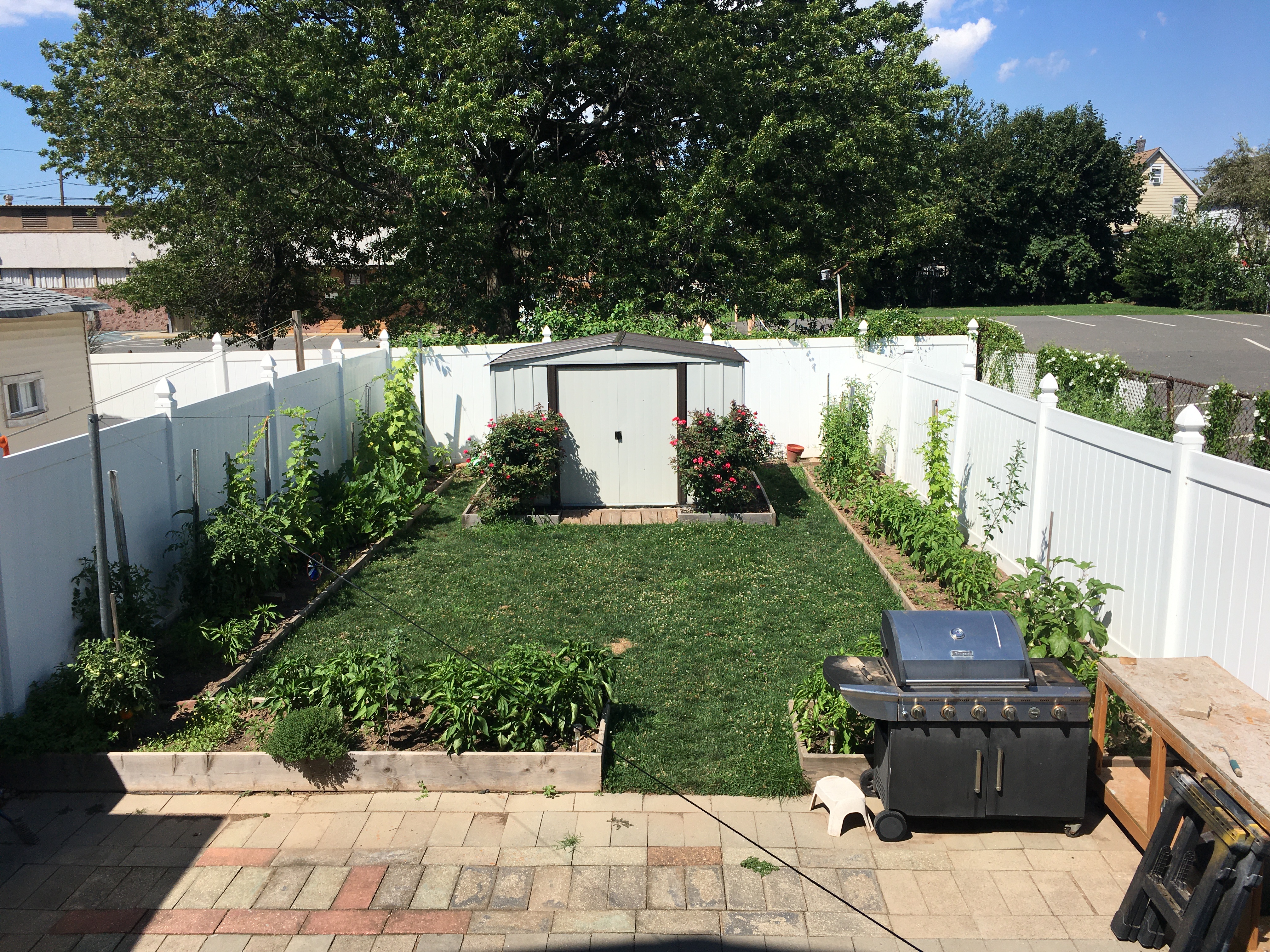 Overhaul of existing backyard to supply more than 150 sq feet of garden space, with an 8′ x 8′ storage shed and outdoor kitchen. The garden beds were constructed using solid wood and brackets to ensure long term durability, while allowing for proper drainage.